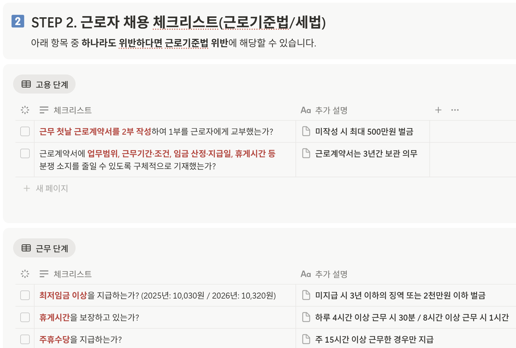 STEP 2. 근로자 채용 체크리스트(근로기준법/세법)