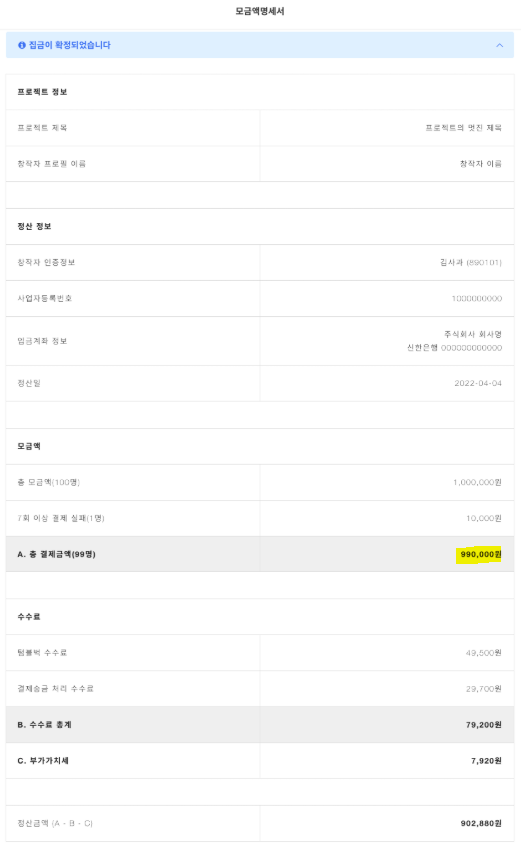 텀블벅 헬프센터에 따르면, 매출로 잡아야 하는 금액은 수수료를 차감한 정산금액이 아니라 ‘총 결제금액’입니다.