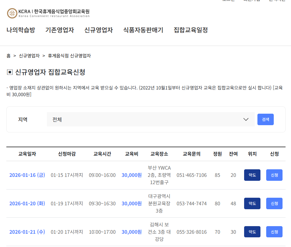 2) 신규창업이라면 6시간 / 기존 영업자는 3시간의 교육을 받아야 합니다.
