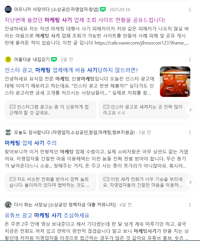 당장 네이버 카페에 검색만 해보아도 무수한 사기 피해 사례를 확인할 수 있습니다.