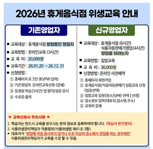 기존 영업자는 온라인 교육으로 수강 가능합니다.(총 3시간)