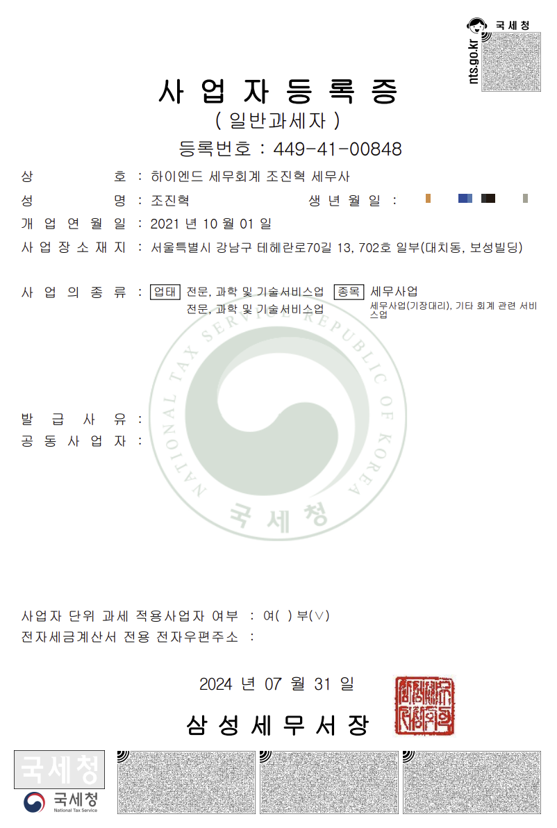 하이엔드 세무회계 조진혁 대표세무사입니다.